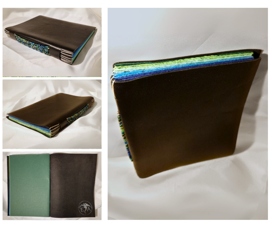 Gyöngyökkel díszített bőrkötéses napló - kék/zöld